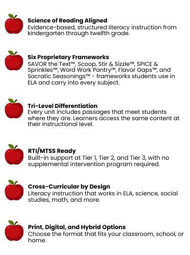 Built on six proprietary instructional frameworks, Flavorful Foundations gives teachers a clear, consistent approach to literacy instruction that students internalize and carry with them year after year.